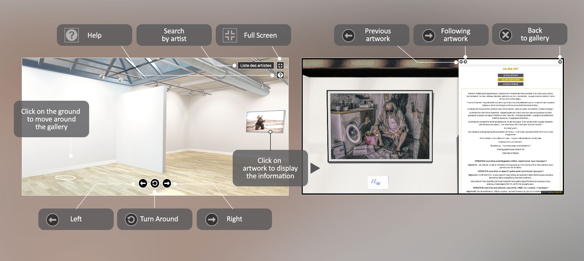 Cliquez sur le nom de l'artiste pour etre directement dirige vers son stand